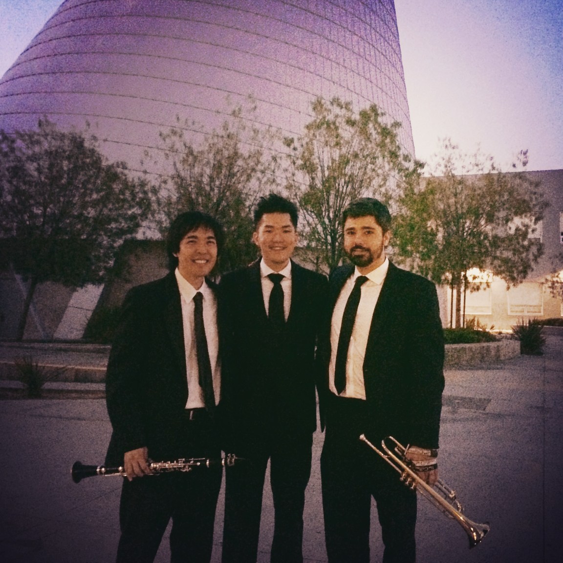 Working and teaching with good friends is such a valuable part of the process of growing as a performer and teacher. You learn from each other, and bring a contagous joy to the rehearsal process. Pictured here, Michael Yoshimi, Nick Sednew, and I stop to breathe for a moment after a very successful Spring performance with the Grand Arts VAPA students. During the semester, we team taught the beginning band class, getting the students up and running for their first year.