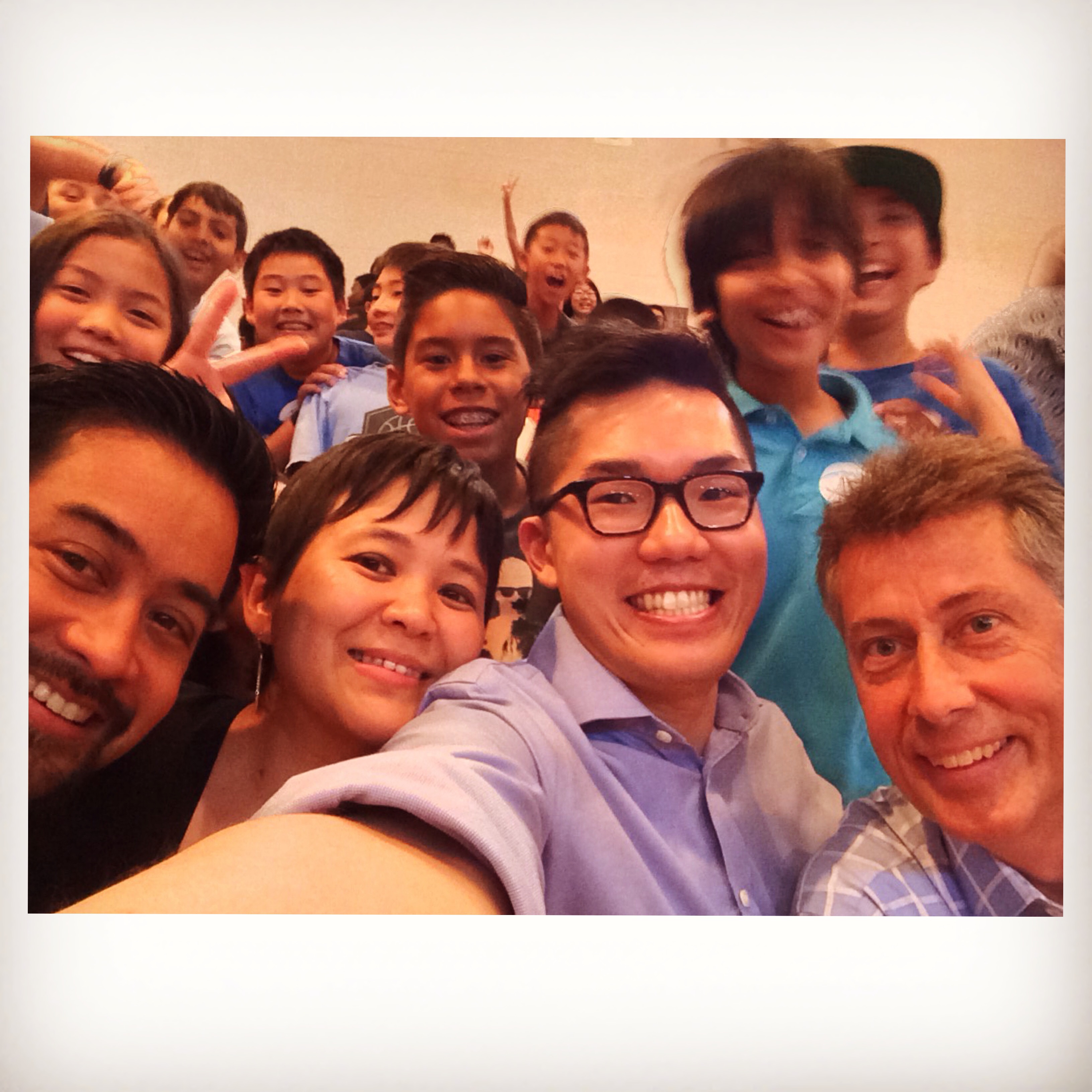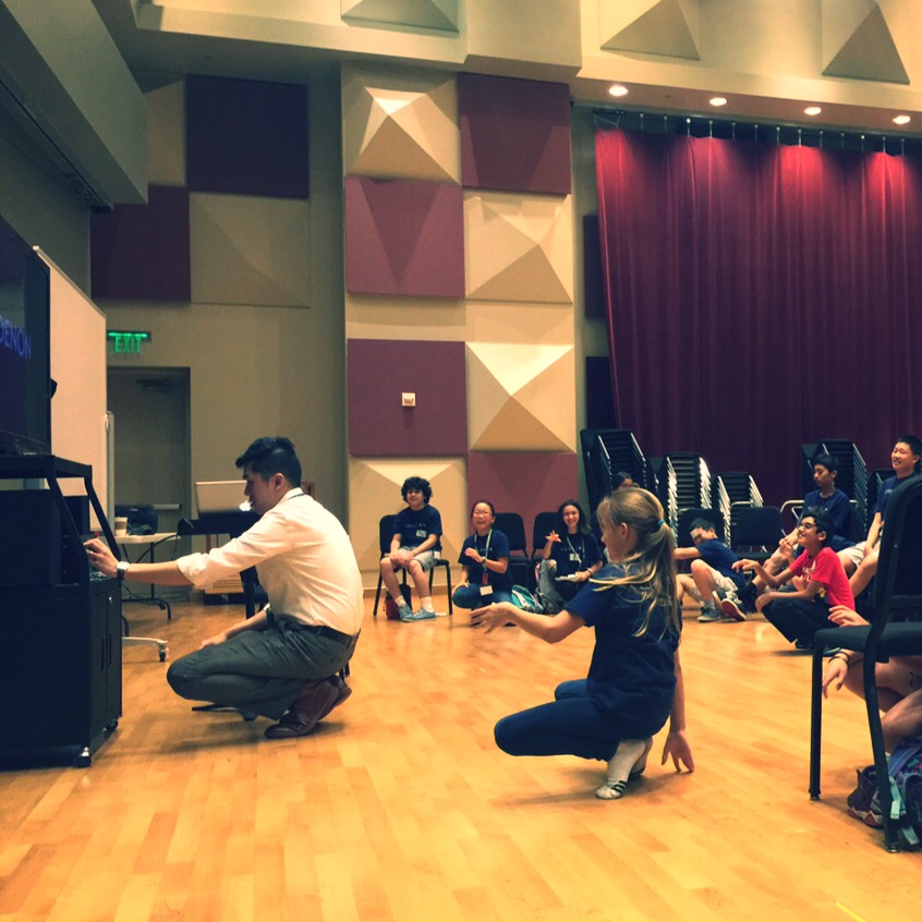 Two week day camp at Colburn for pianists age 9-13. These kids have a great sense of humor. In this photo, we’re playing a rhythm game where the students copy me. I turned around to adjust the sound, they kept playing.