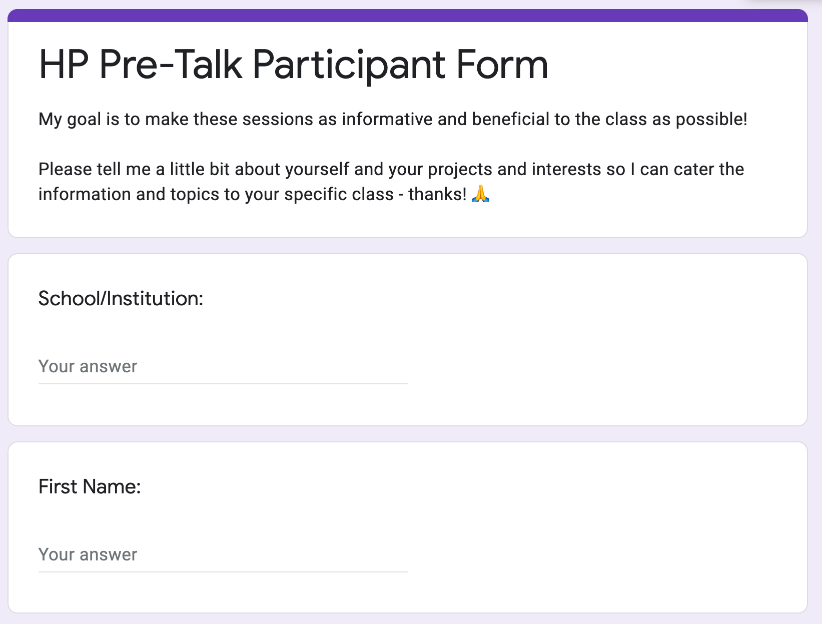 Please take a moment to tell me a little bit about yourself beforehand so I can cater the information and presentation to your interests and challenges!
